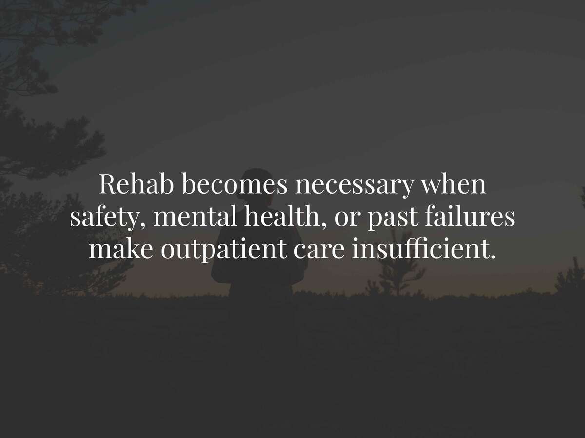 Residential rehab becomes necessary when outpatient tapering fails, co-occurring substance addictions exist, severe mental health conditions require intensive treatment, or unsafe home environments prevent recovery. People using high doses (6mg+ daily) for years may need residential medical monitoring during initial withdrawal.