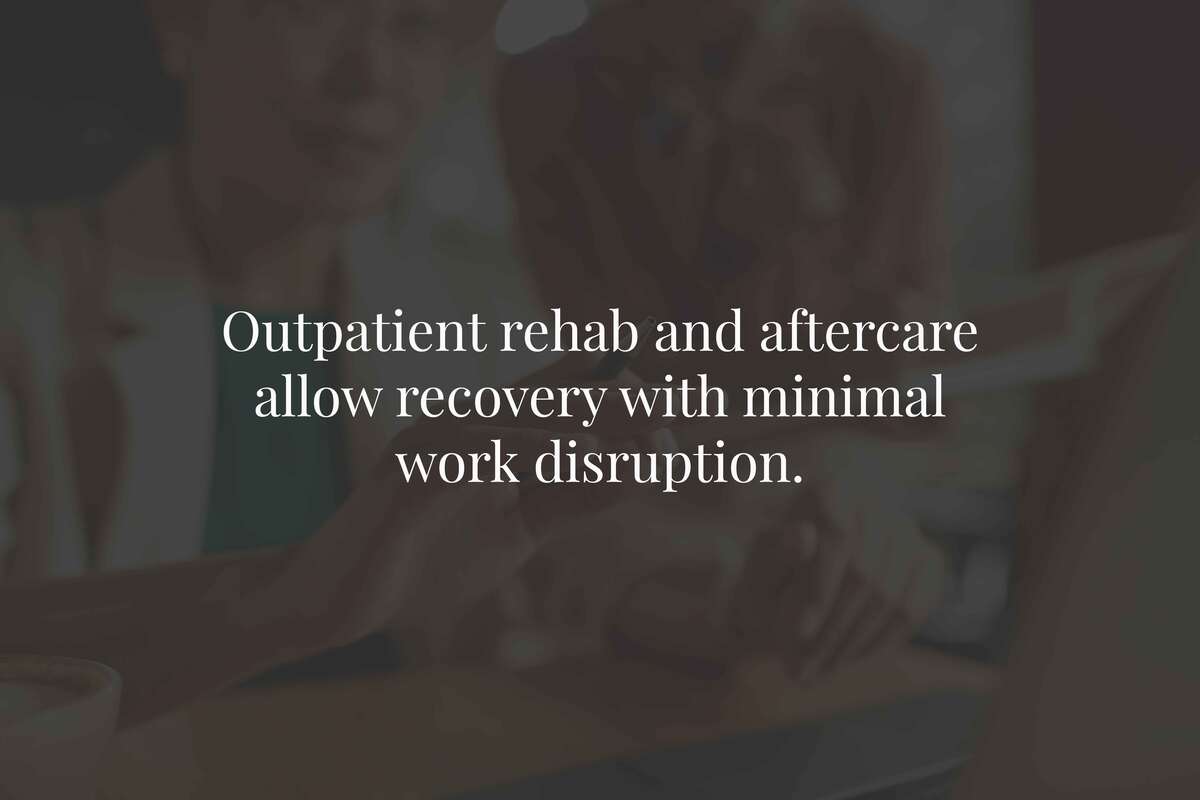 Outpatient treatment allows you to maintain your job while attending rehab. Instead of full-time residential care, sessions occur during non-working hours or around your schedule. Outpatient treatment is ideal for individuals who want to begin recovery without taking a leave of absence from work.